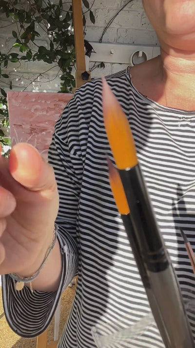Both paintings feature architectural suggestions of two of my favourite places in the world. The abstract windmill is a nod to the ruins found on the island of Formentera, and the stone archway is the entrance to one of my favourite local places - Angophora Reserve.