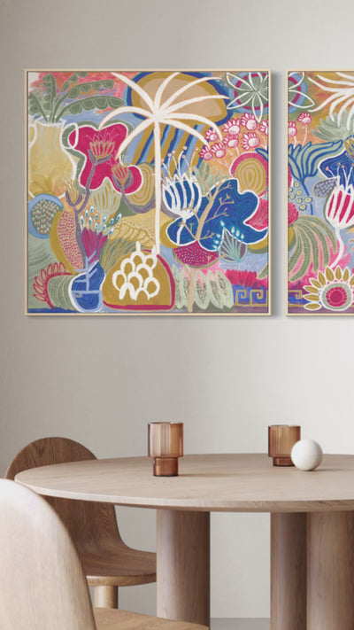Bend like a Banana is a playful artwork, painted for my friend with whom I have shared many adventures. One of these was attempting to ski in Europe while our ski instructor begged us to "bend like a banana." The original artwork now hangs in her home in Ibiza, injecting bright and colourful vibes into their mainly white and tonal home.
