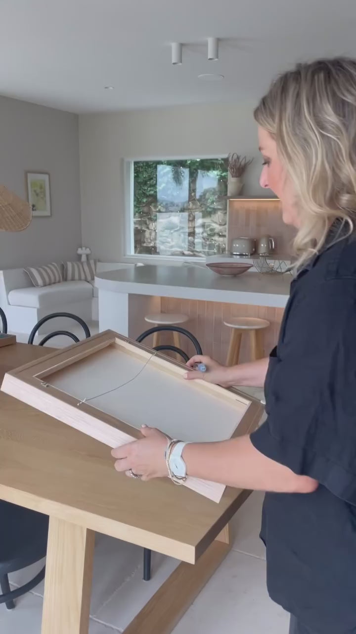 Stretched & framed prints are hand made to order in Mornington, Victoria. Each piece is framed professionally and comes ready to hang with hanging attachments for easy display in your space.